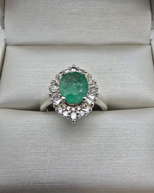 Bague argent massif Emeraude Colombienne